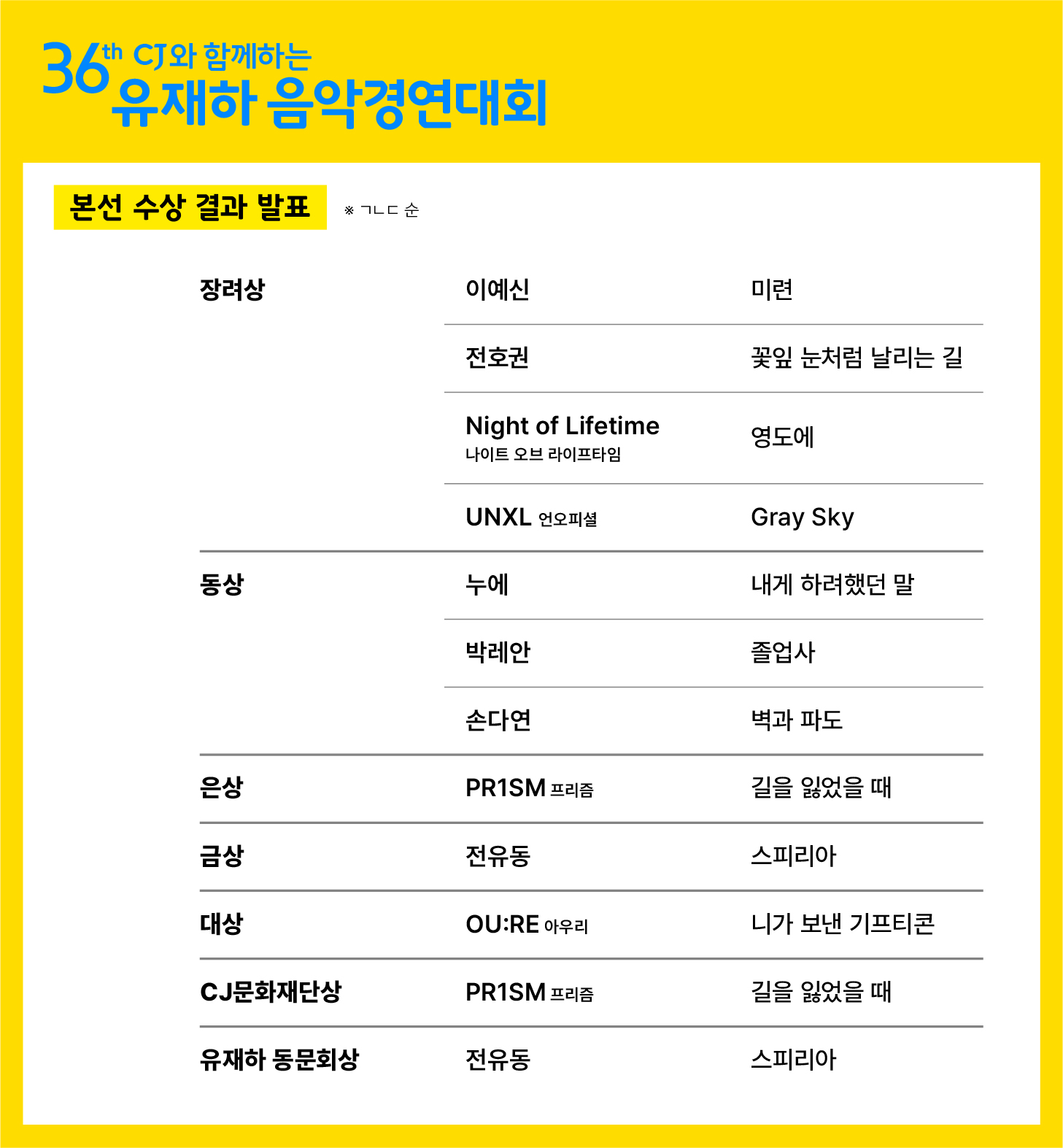 아래 10팀은 이제 '유재하음악경연대회 총동문회'의 36기 동문이 되셨습니다!