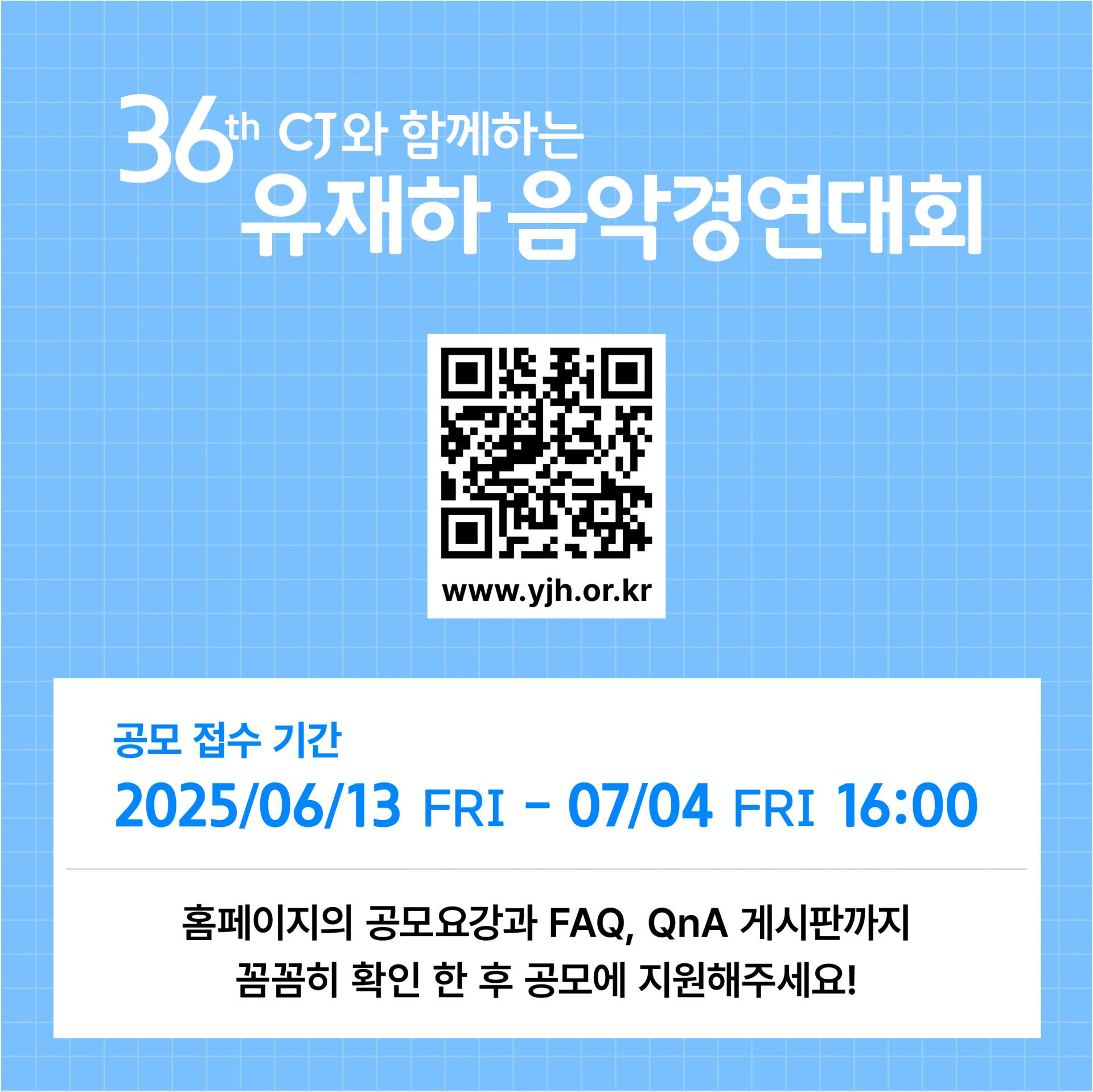 제36회 CJ와 함께하는 유재하 음악경연대회에 큰 관심 가져주셔서 감사합니다.