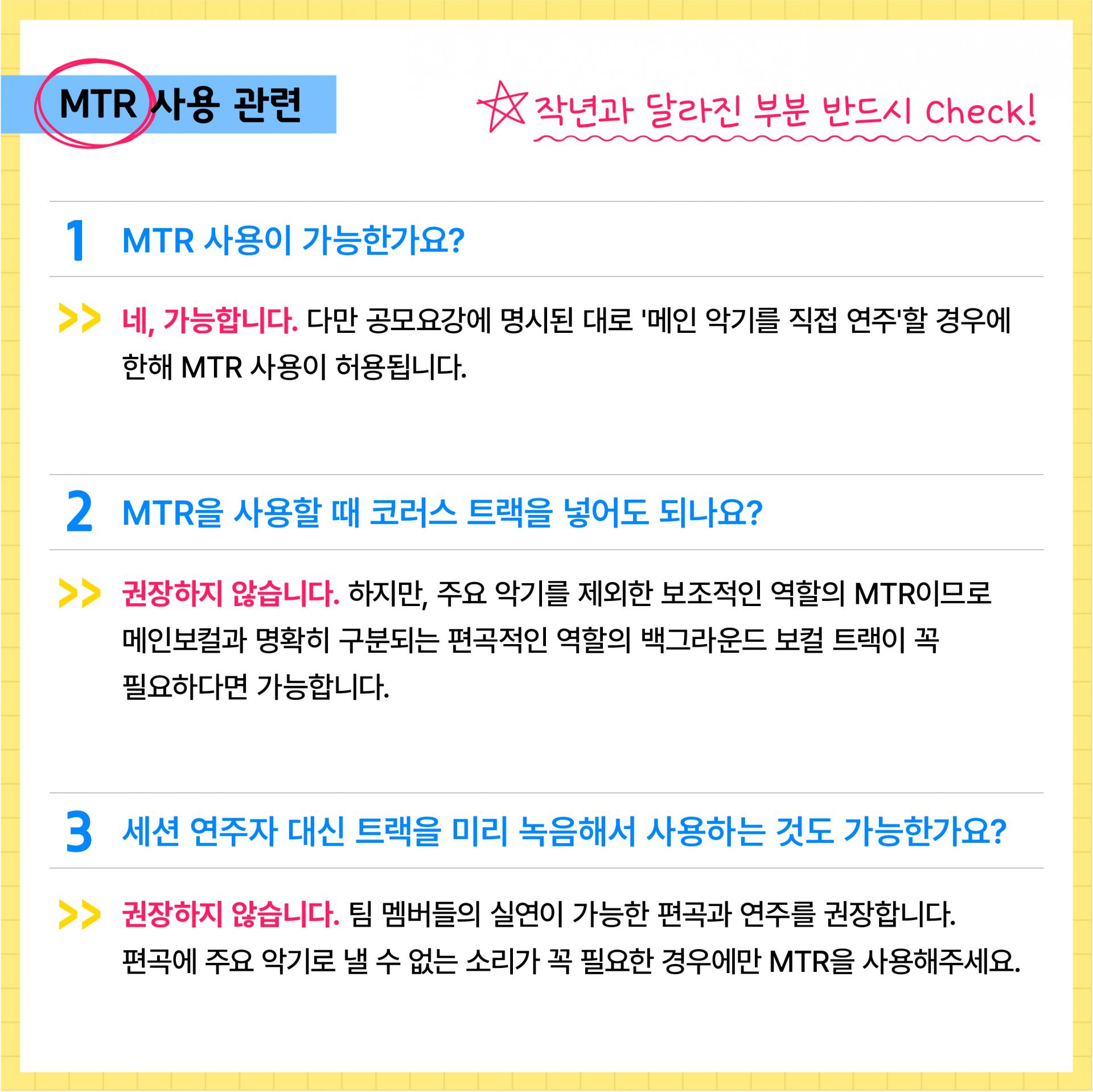 개인 혹은 팀 내에서 주요 악기(기타, 건반 등)를 라이브로 연주하는 경우, 직접 Programing한 MTR 등의 보조적인 활용은 허용합니다.